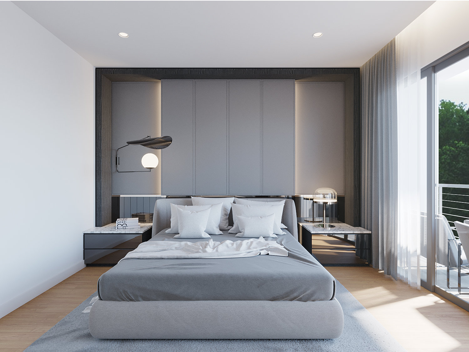 This contemporary interior follow a minimalist style that fits with a modern lifestyle. The room with large looking glass becomes visually more spacious because the mirror reflects the light thus creating the illusion of a larger interior, makes a space look and feel fresh, new, and inviting.
